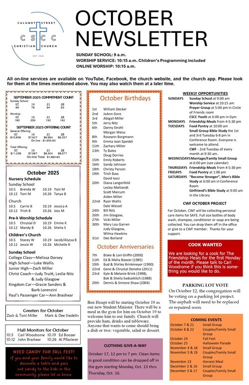 The newsletter is a great way to stay up to date on all the church goings-on, and make sure you're aware of all that you could be involved in! So click on and let us know how you'd like to receive it!