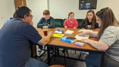 Junior High and Senior High kids join Scott Goodson, our Youth Minister, in the high school classrooms in the gym for a time of Bible study and prayer.